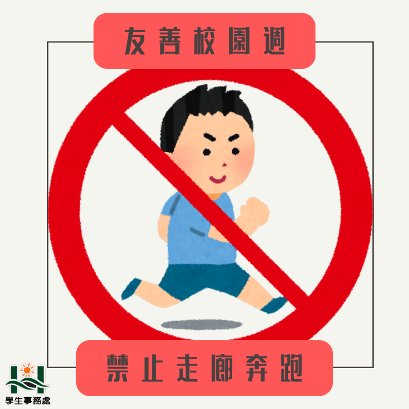為了維護校園安全,請大家務必遵守走廊禮儀,避免奔跑,以免發生意外。走廊是大家共同使用的空間,請保持禮讓與秩序,確保自身及他人的安全。