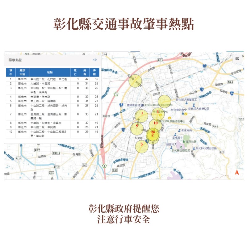更多交通安全資訊,請參閱「花現彰化-彰化縣政府新聞處」Facebook粉絲專頁:花現彰化-彰化縣政府新聞處 敬請全校師生及家長共同配合,提高交通安全意識,確保行車與行人安全。