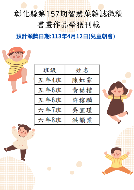 113年4月12日頒發作品獲刊第157期智慧菓雜誌暨校內榮譽銀牌/獎狀名單