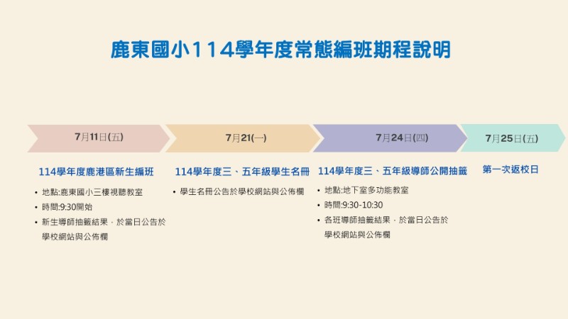 114學年度鹿東國小新生、三、五年級學生常態編班作業說明