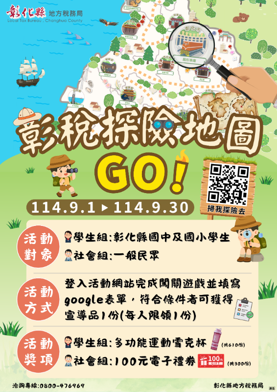 託播內容:「彰稅探險地圖GO!」線上租稅闖關活動自即日起至114年9月30日止,登入活動網站