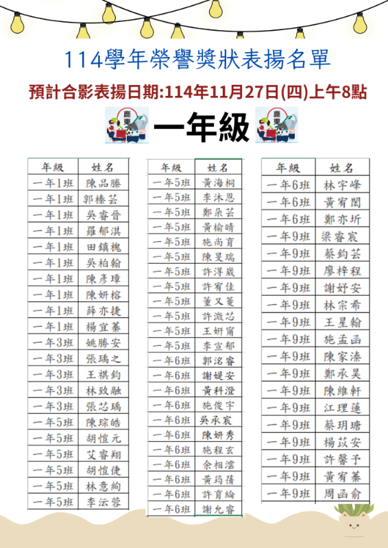 114年11月27日(四)預計表揚校內榮譽獎牌名單